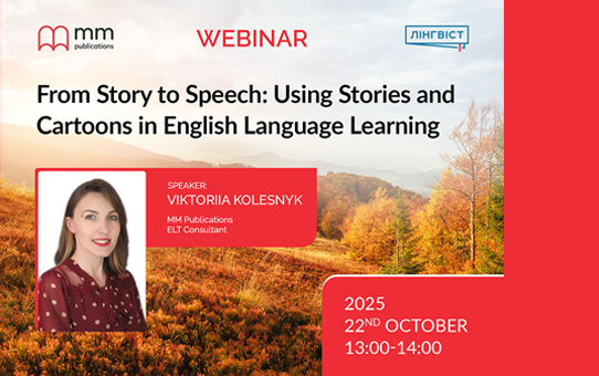 Запрошуємо вас взяти участь в вебінарі «From Story to Speech: Using Stories and Cartoons in English Language Learning» від видавництва МM Publications…